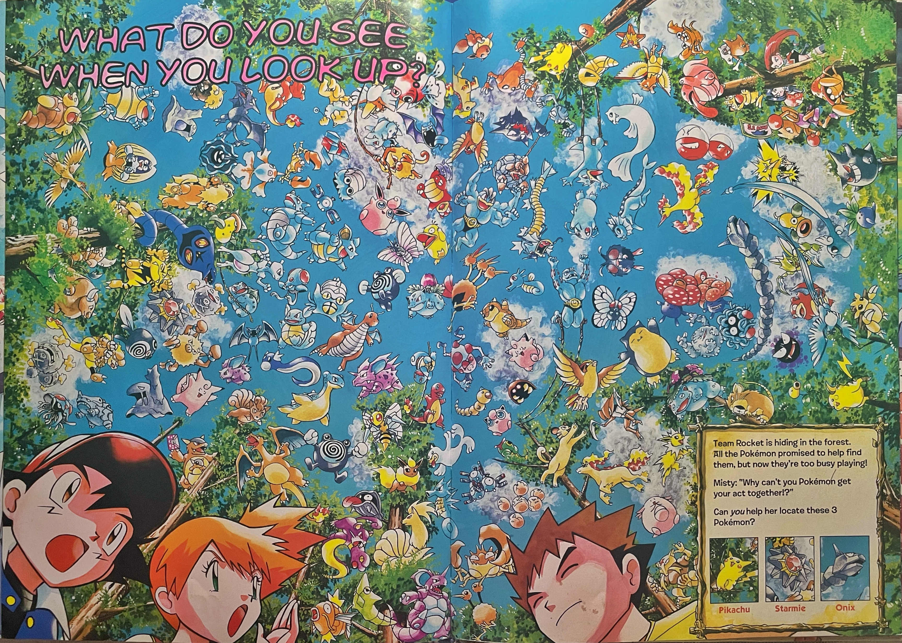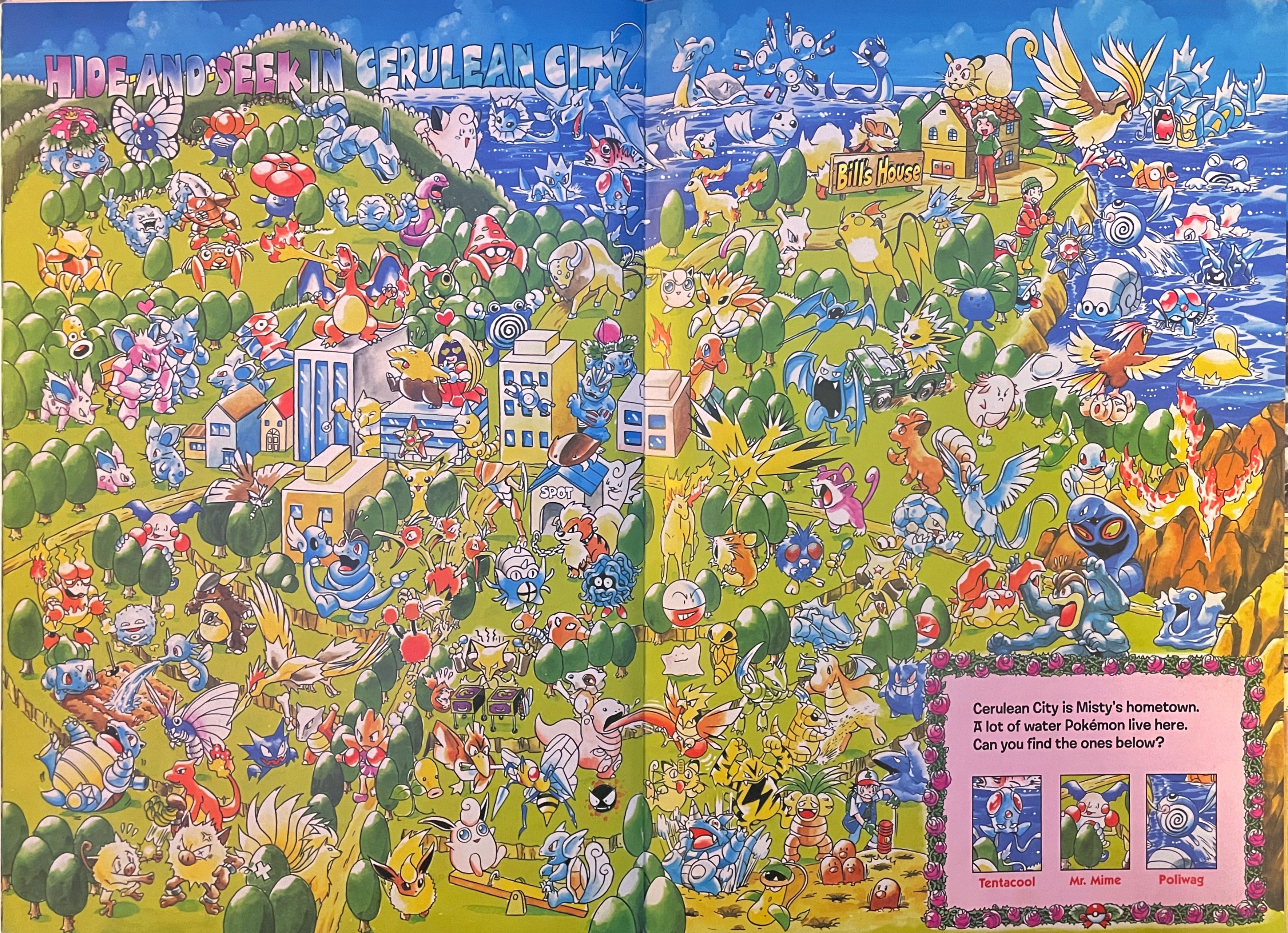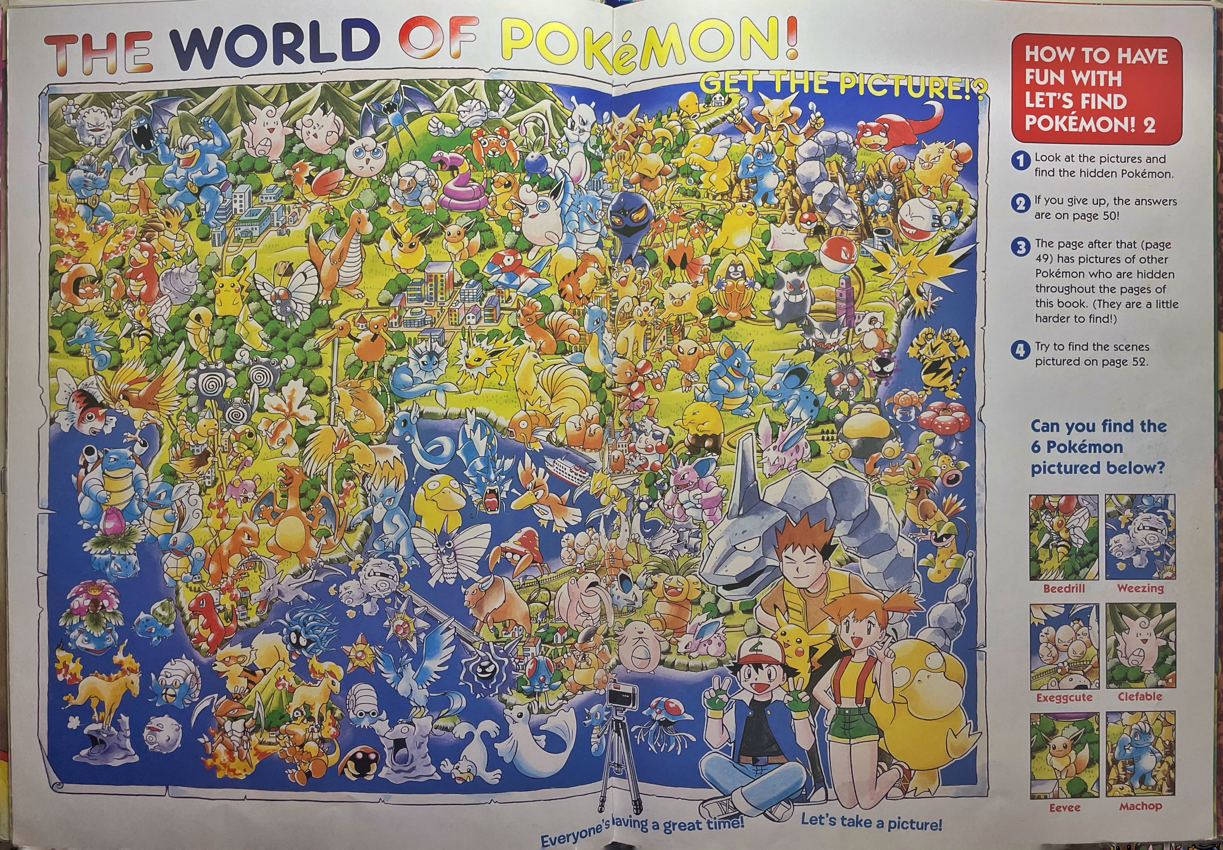 note: This page contains pages and info from Let's Find Pokemon! (1999), Let's Find Pokemon! 2 (2000), and Let's Find Pokemon! 3 (2000). Let's Find Pokemon! Special Complete Edition (2006) is a collection of these 3 books published in North America and I found it redundant to include each one of these books. If I find any information about changes made between Find! 1, 2, and 3 and the publishing of the Special Complete Edition- I will make a note of it!