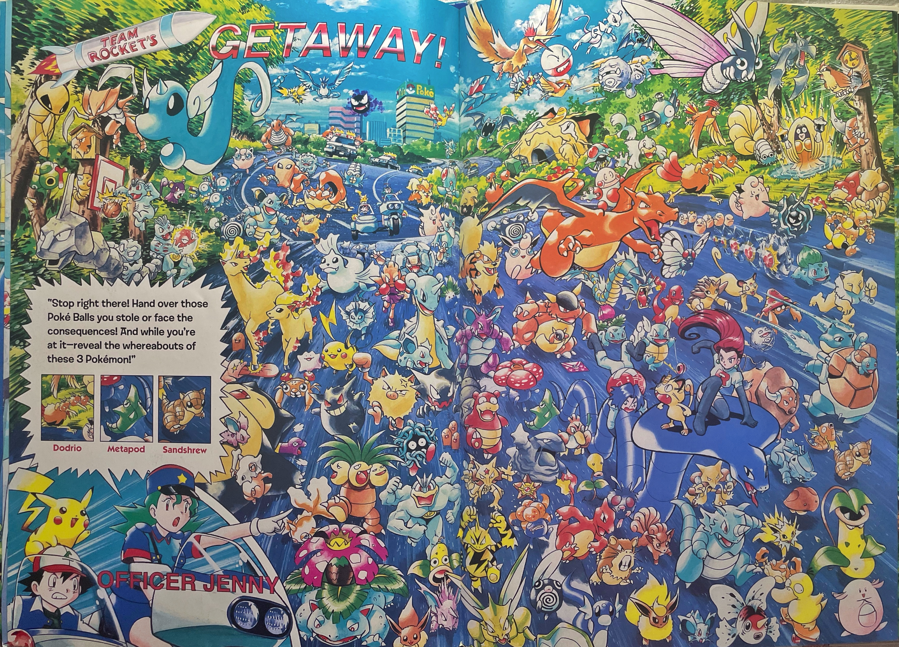 "Team Rocket! Blast off at the speed of light! Surrender now or prepare to fight! But first, find these 3 Pokemon- or else!!!"