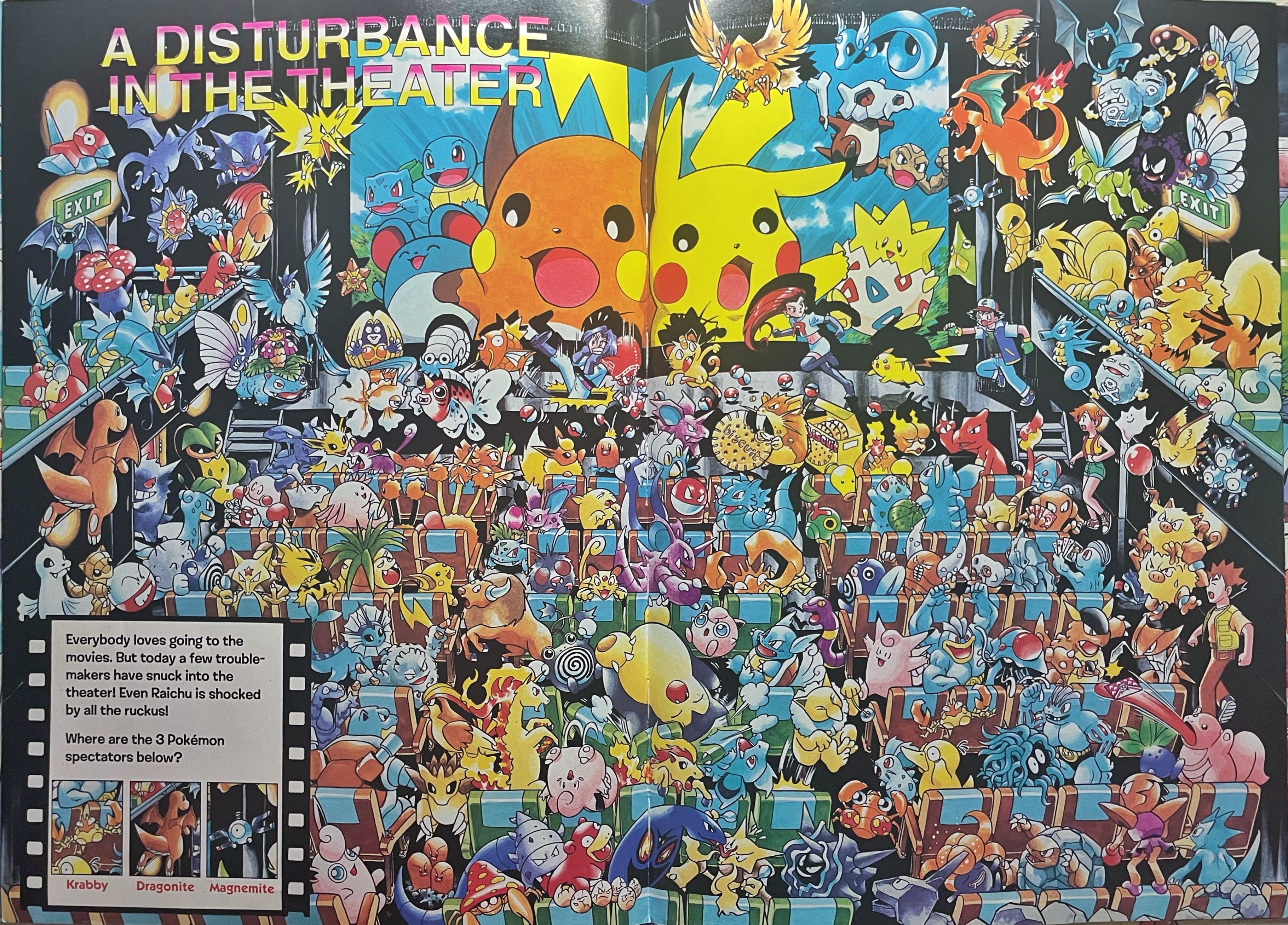 Everybody loves going to the movies. But today a few troublemakers have snuck into the theater! Even Raichu is shocked by all the ruckus!