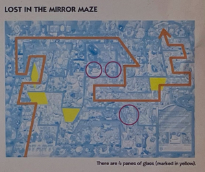 In this funhouse built out of glass and mirrors, you can't tell left from right! Ouch! You just walked into a glass wall!