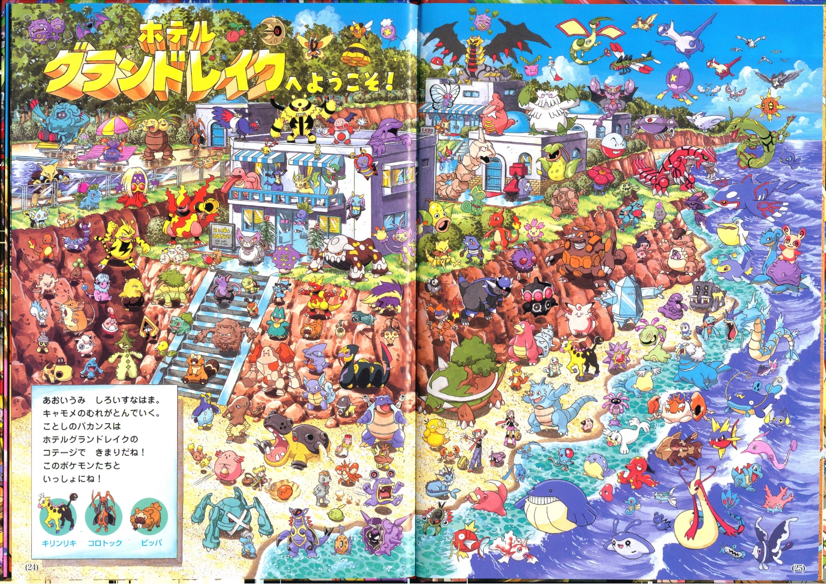 "Blue sea and white beach sand. Flocks of WIngull fly by. This year’s holidays should definitely be spent at the chalets of Hotel Grand Lake! Along with these Pokémon!