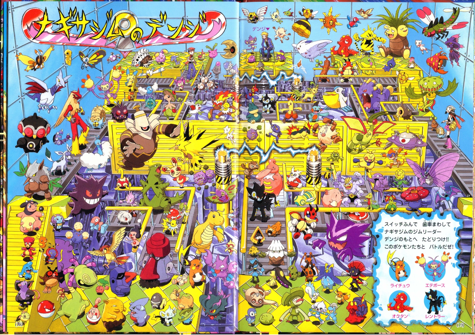 "Step on the switches to turn the gears, and get to Volkner, gym leader of the Sunyshore Gym!! You’ll fight these Pokémon!