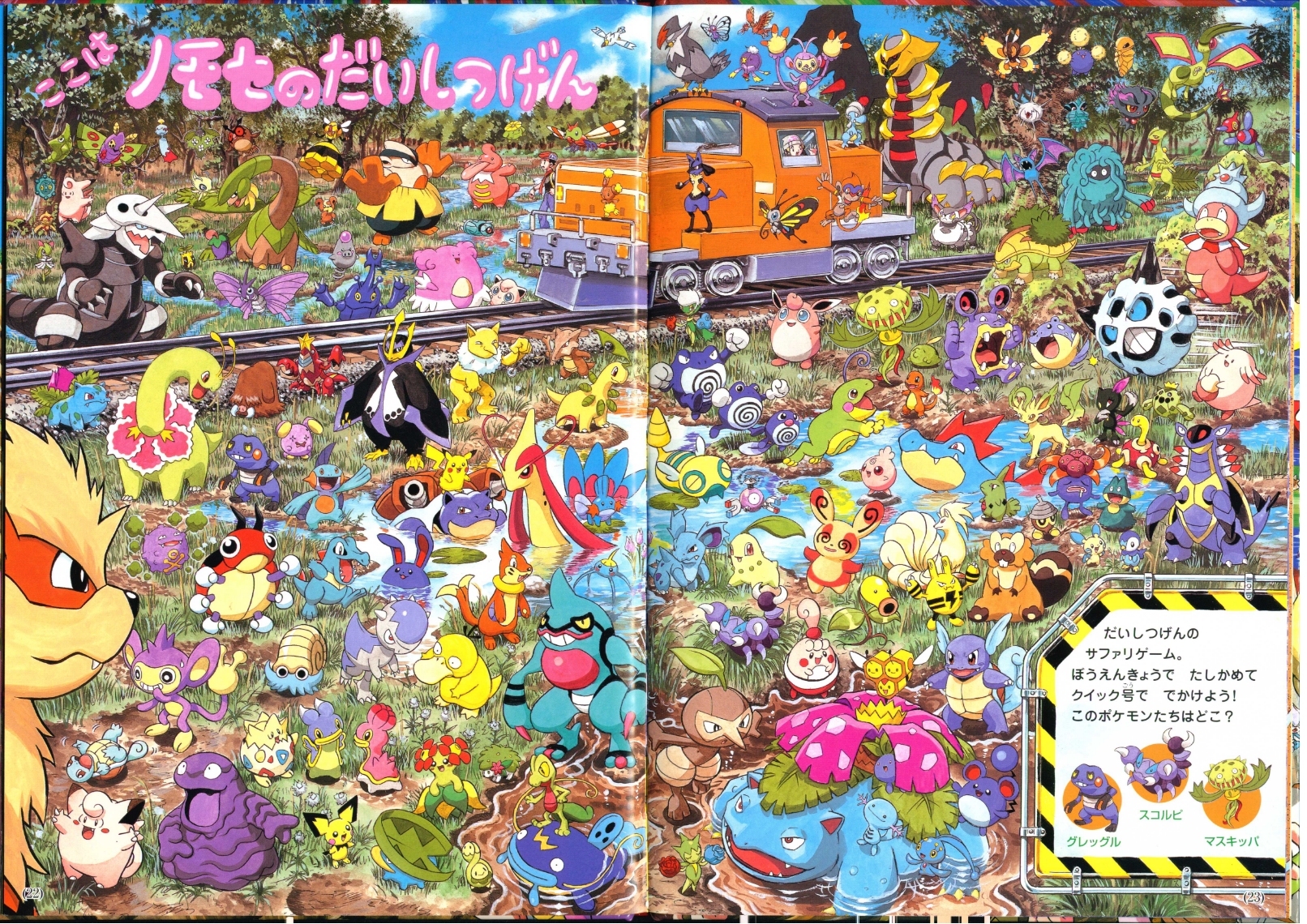 "The Safari Game of Great Marsh. Check it out with the binoculars and then head there with the Quick Trains! Where are these Pokémon?