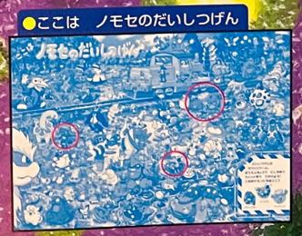Find Pokemon! Diamond and Pearl (or "ポケモンをさがせ! / 10 ダイヤモンド・パール") was published by Shogakukan Inc. in Japan on December 16th, 2008. It has 31 pages and 11 full scenes. These scenes contain Pokemon and key locations from the Sinnoh region. Most scenes ask you to find 3 specific pokemon hidden in the chaos, sometimes asking you to complete another puzzle task having to do with the layout of the scene. There are a series of plots that range through the entire book which you can learn more about in extras. This is the 10th "Find Pokemon!" book.
