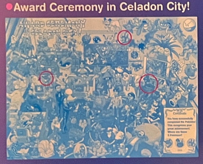 BONUS: There are 10 non-character people in this scene. Noting that this scene takes place in the GAME FREAK HQ in Celadon City. Due to this, I have a hunch that these are significant people from the Fire Red and Leaf Green development team at GAME FREAK. If you have any ideas for who each person is, PLEASE reach out and let me know :)