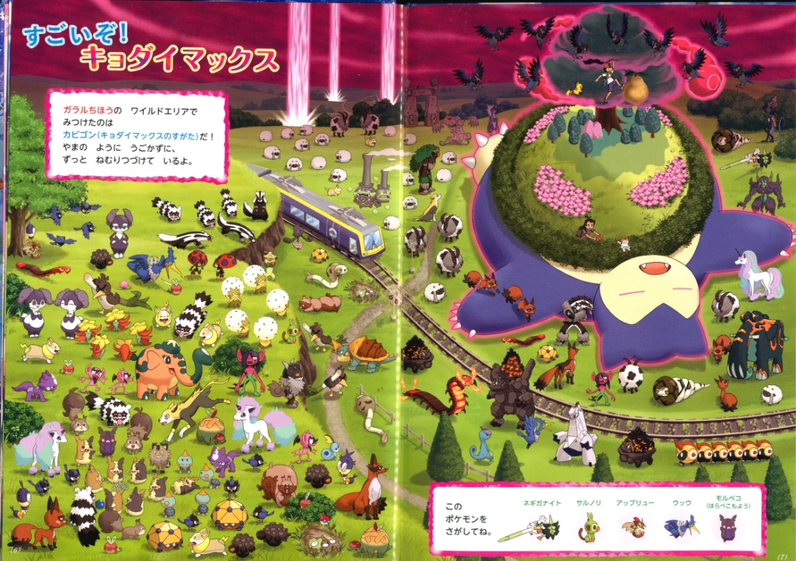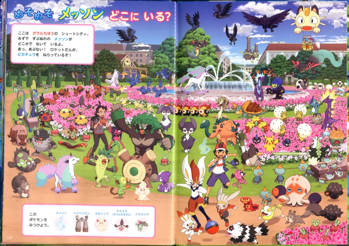 BONUS! : Some scenes in this book feature only pokemon from certain regions! This is the second page that focuses on Galar Pokemon, which is interesting! It is strange to note that, just as there is no "Find Pokemon!" book from Gen 6, there is no scene specifically focused on Kalos/Gen 6.