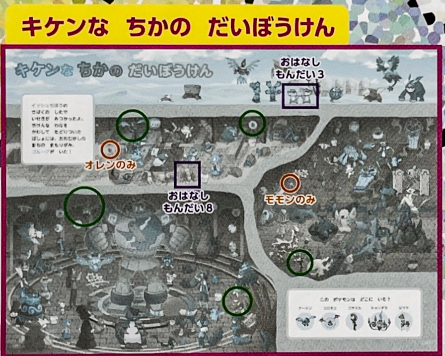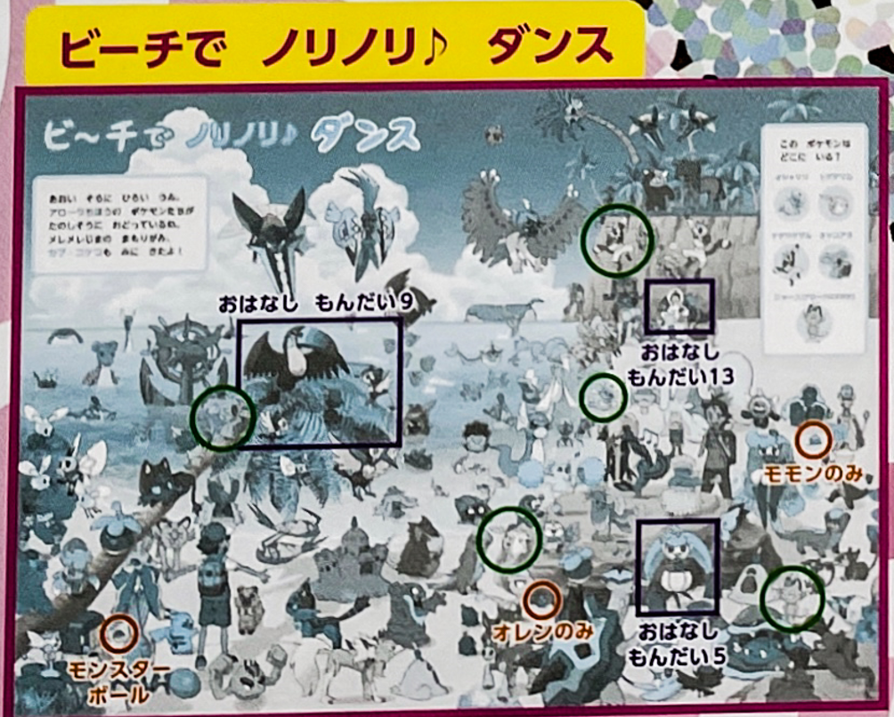 どのポケモンも生き生きとした表情で、ポーズもいろいろ。「なにをしているのかな?」と1匹ずつ見始めたら、あきることがありません。ひとりでも、家族や友達と問題を出し合っても、楽しめます。