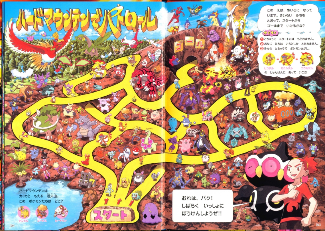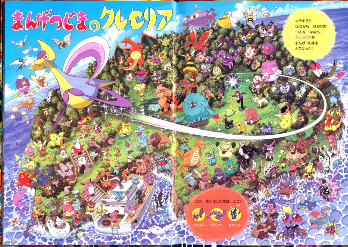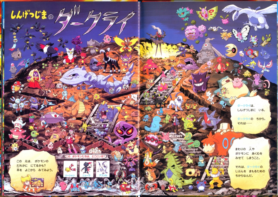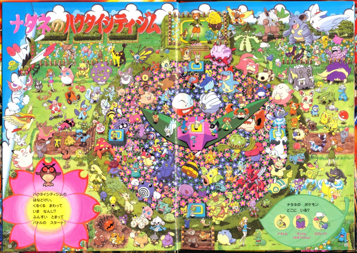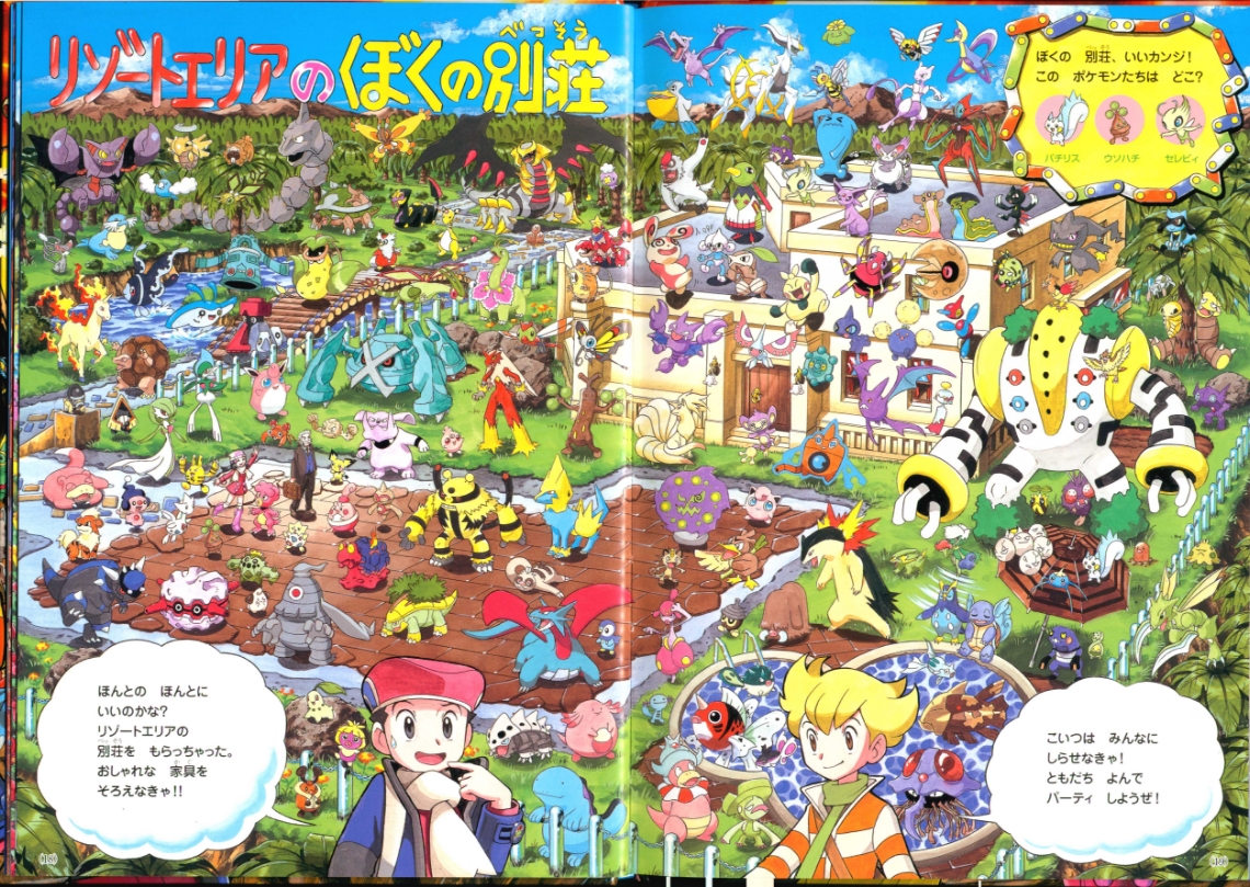 Find Pokemon! Platinum (or "ポケモンをさがせ! ") was published by Shogakukan Inc. in Japan on March 25th, 2010. This is the 11th "Find Pokemon!" book. It has 31 pages and 11 full scenes, including the cover as its own scenes. These scenes contain Pokemon and key locations from the Sinnoh region. Most scenes ask you to find 3 specific pokemon hidden in the chaos, sometimes asking you to complete another puzzle task having to do with the layout of the scene. There are a series of plots that range through the entire book which you can learn more about in Extras.