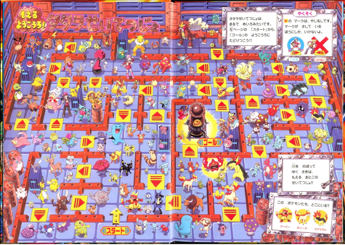 Fuego Ironworks is like a maze. Starting at the “Start” point on the left page, get to the furnace at the “Goal”!!