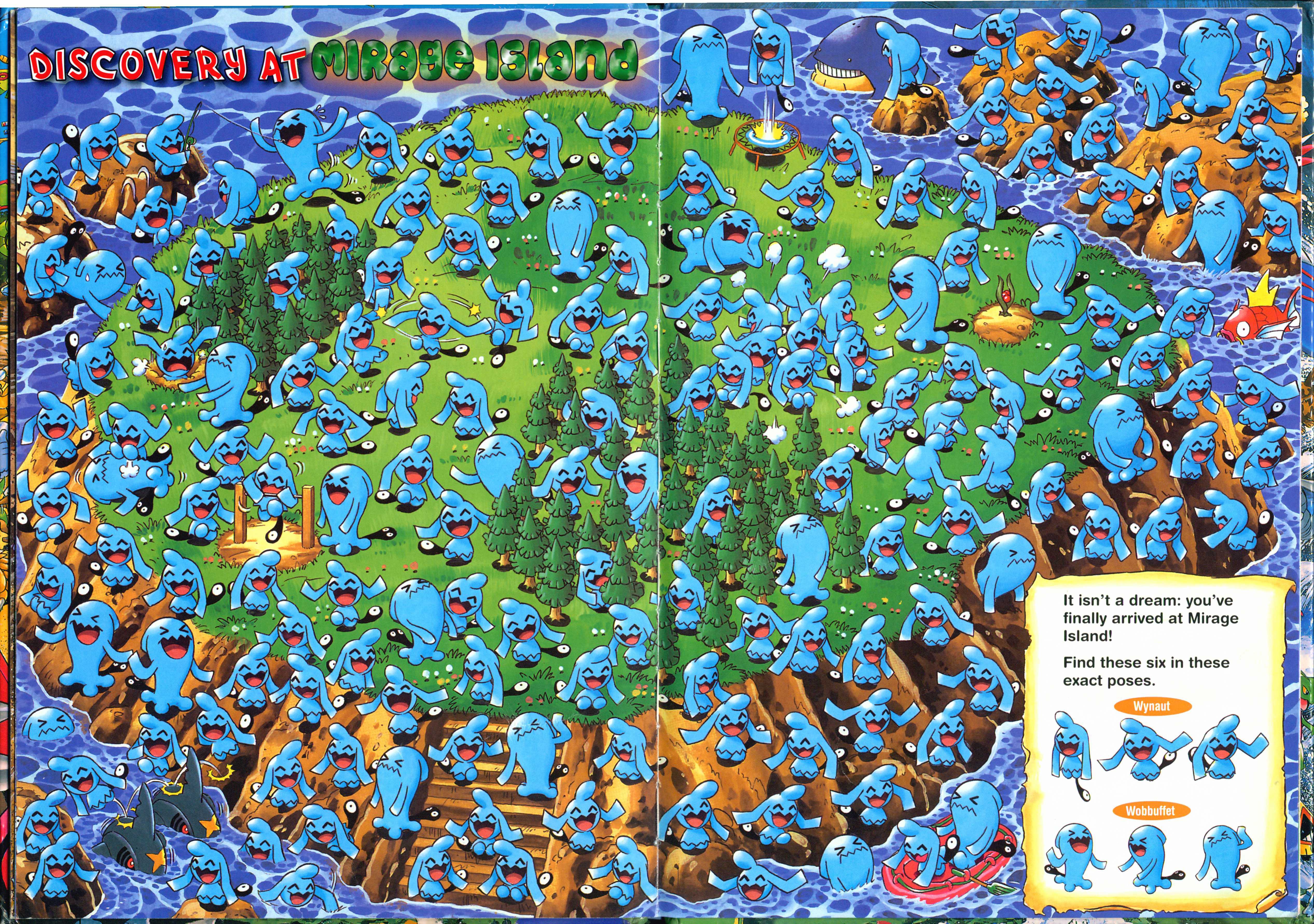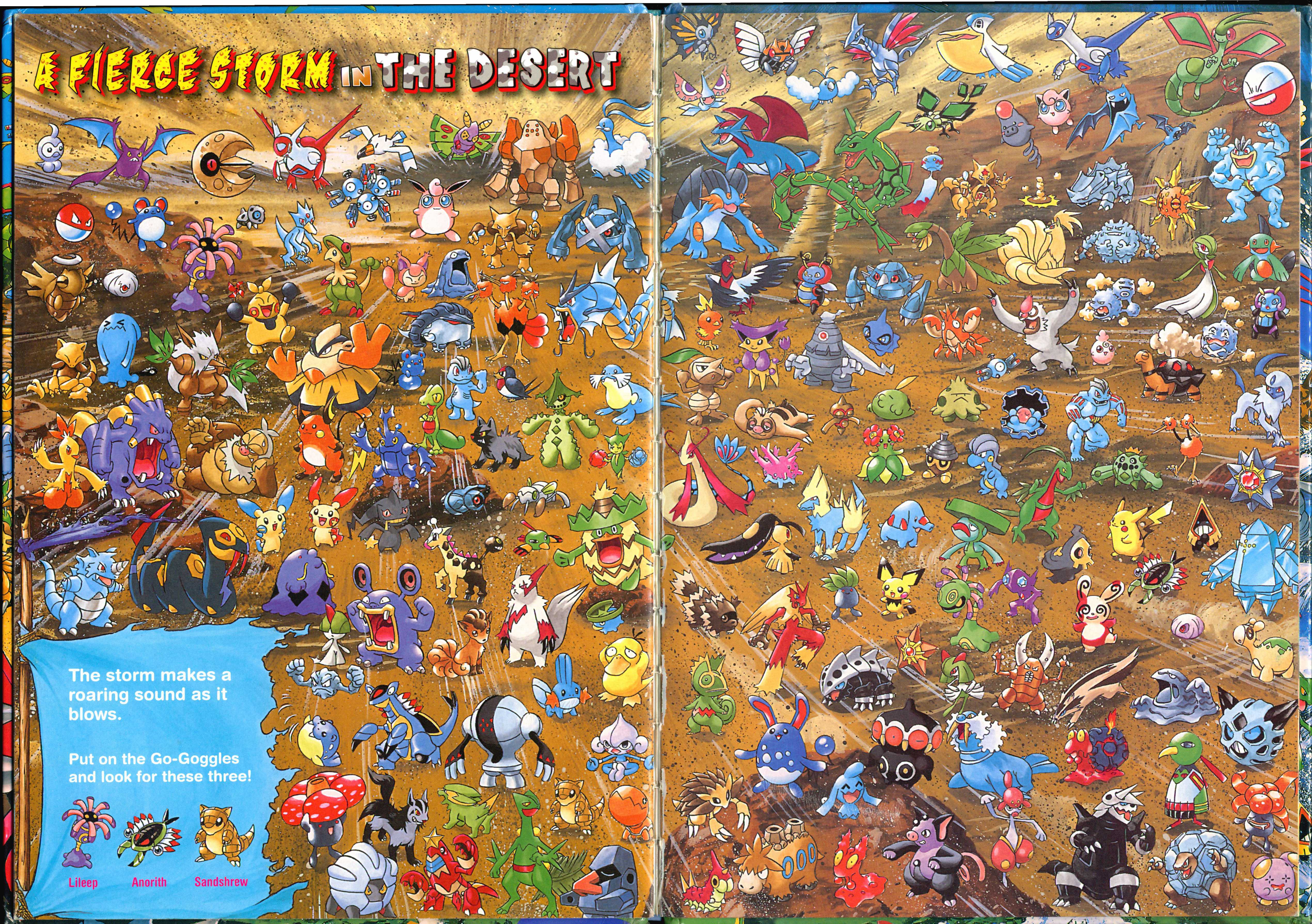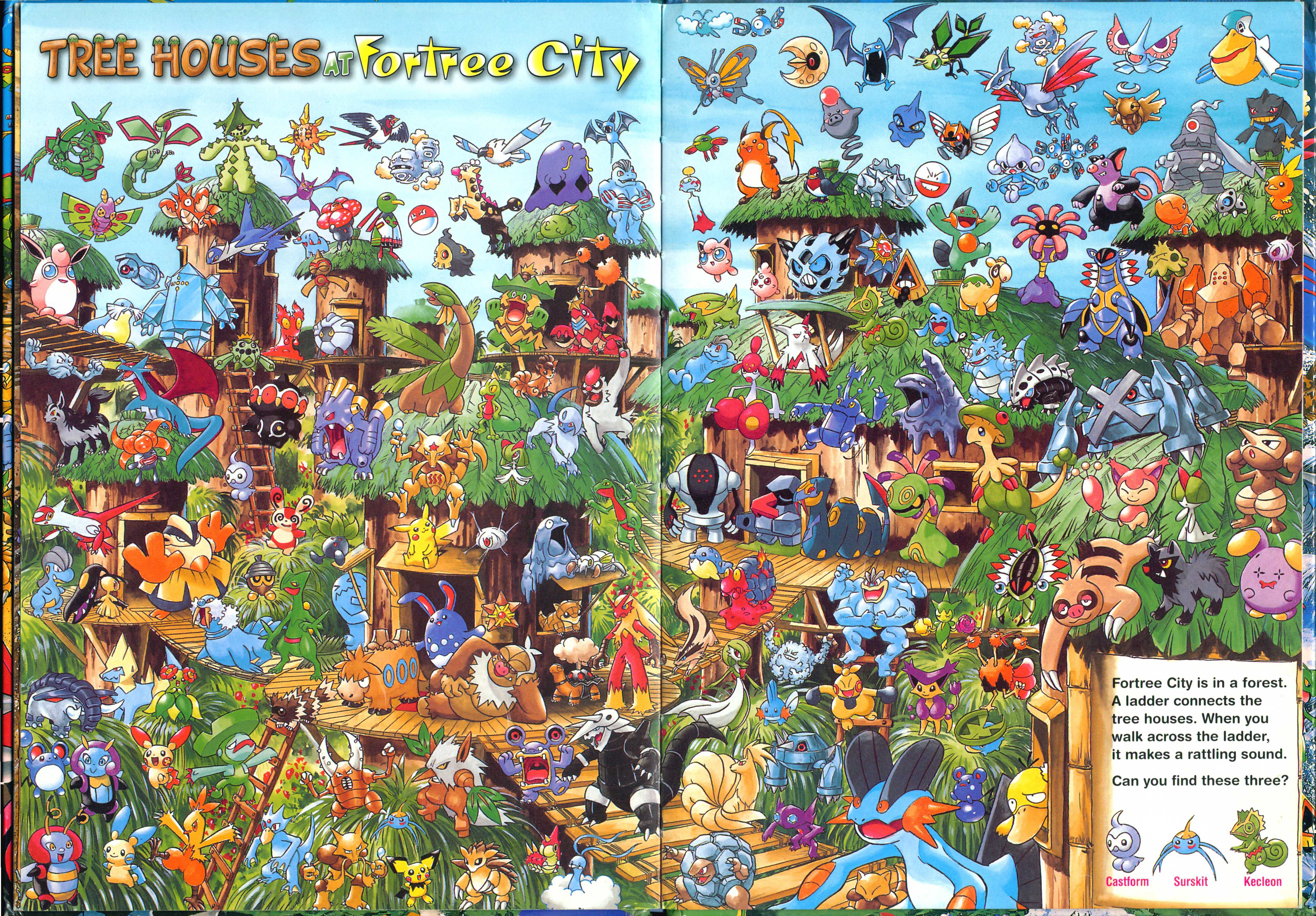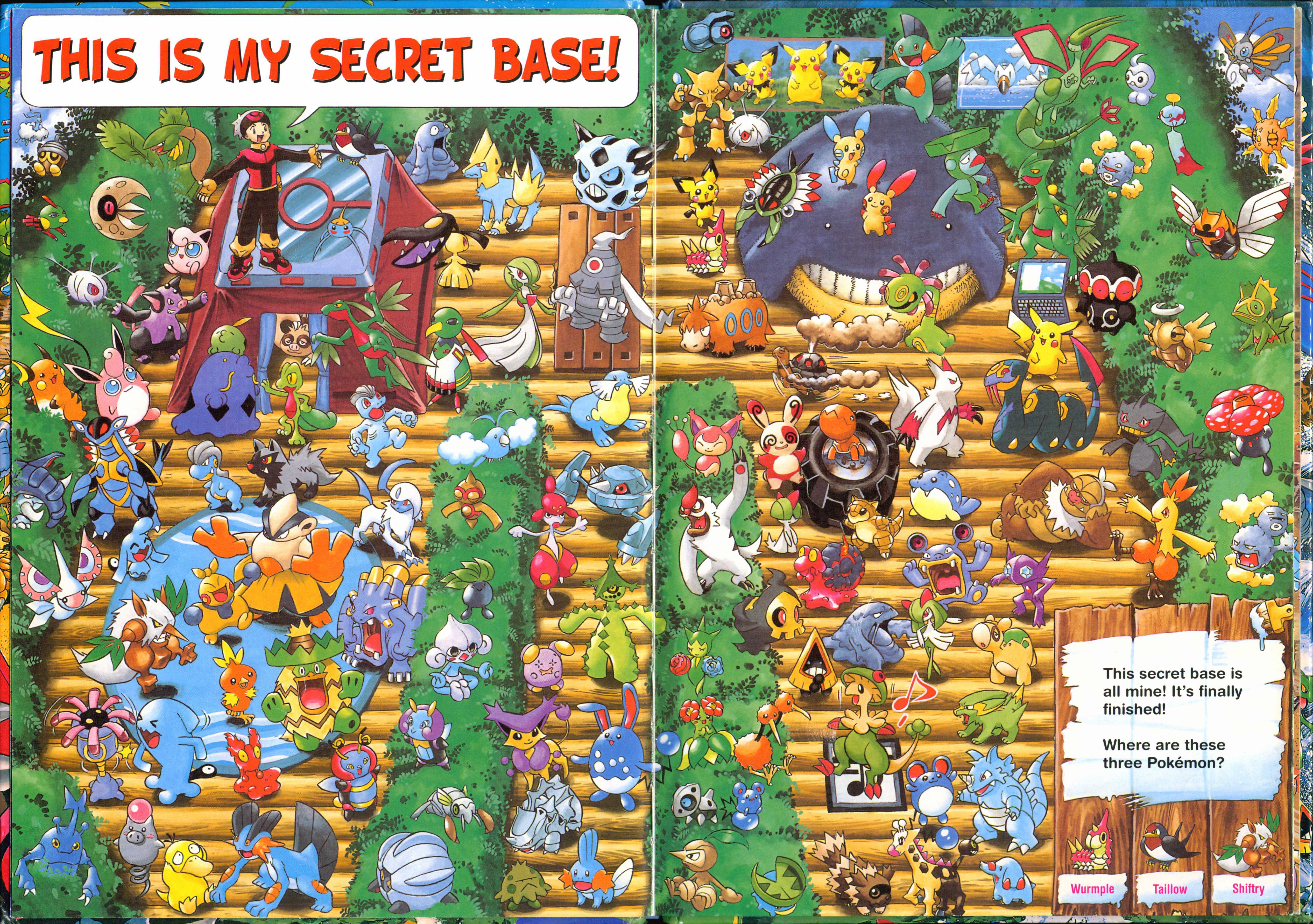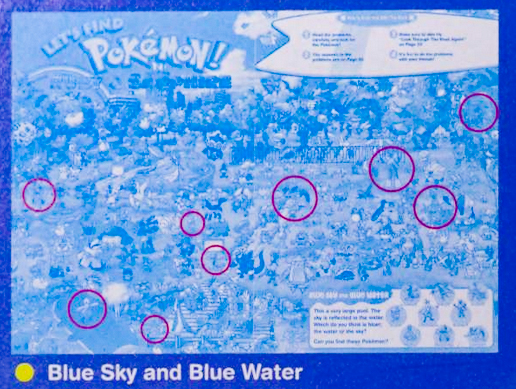 " Reads L to R (Western Style) All your favorite Pokémon are hidden in different places. Gotta catch 'em all, but you have to find them first! Where is Pikachu? Find Pokémon in colorful places and other scenic spots from the game! Gotta catch 'em all, but you have to find them first!"