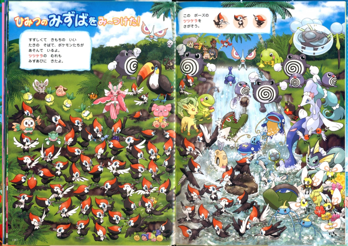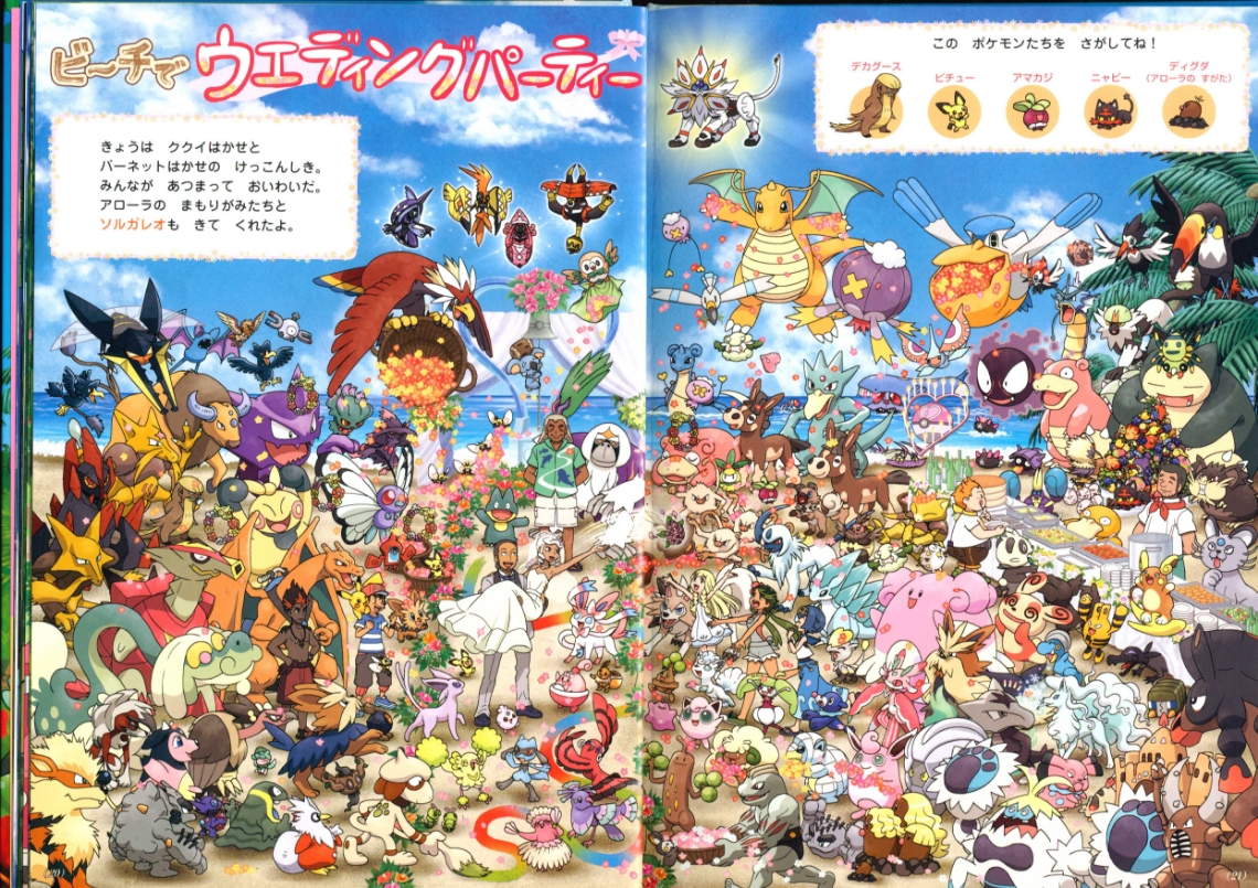 Find Pokemon! Best Wishes (or "ポケモンをさがせ! サン&ムーン") was published by Shogakukan Inc. in Japan on February 28th, 2019. This is the 13th "Find Pokemon!" book. It has 31 pages and 10 full scenes. These scenes contain Pokemon and key locations from the Alola region. Most scenes ask you to find 3 specific pokemon hidden in the chaos, sometimes asking you to complete another puzzle task having to do with the layout of the scene. There are a series of plots that range through the entire book which you can learn more about in Errors.