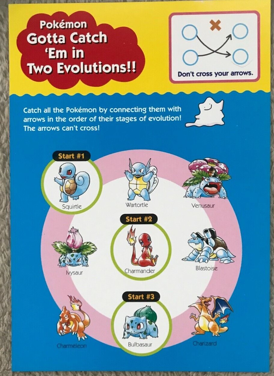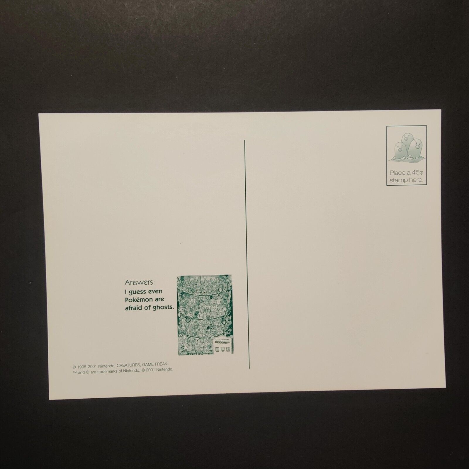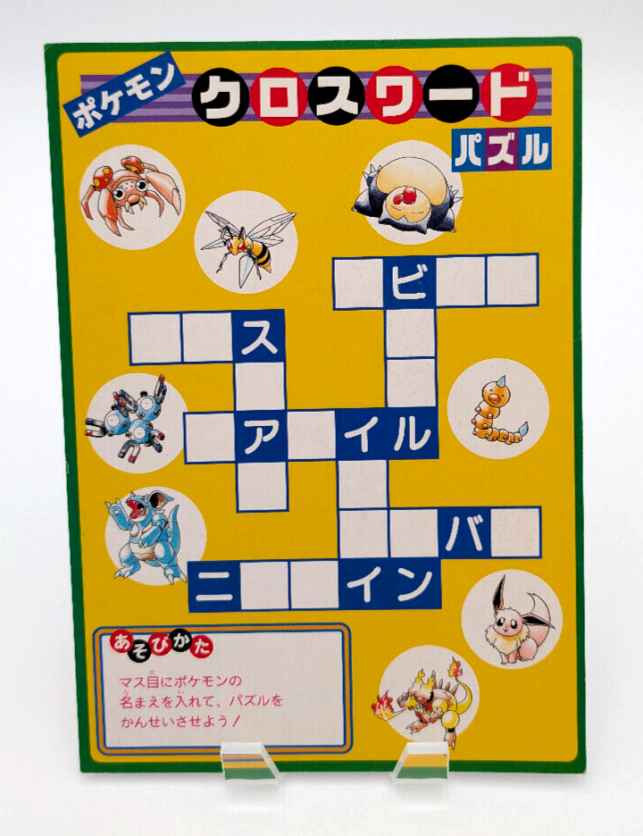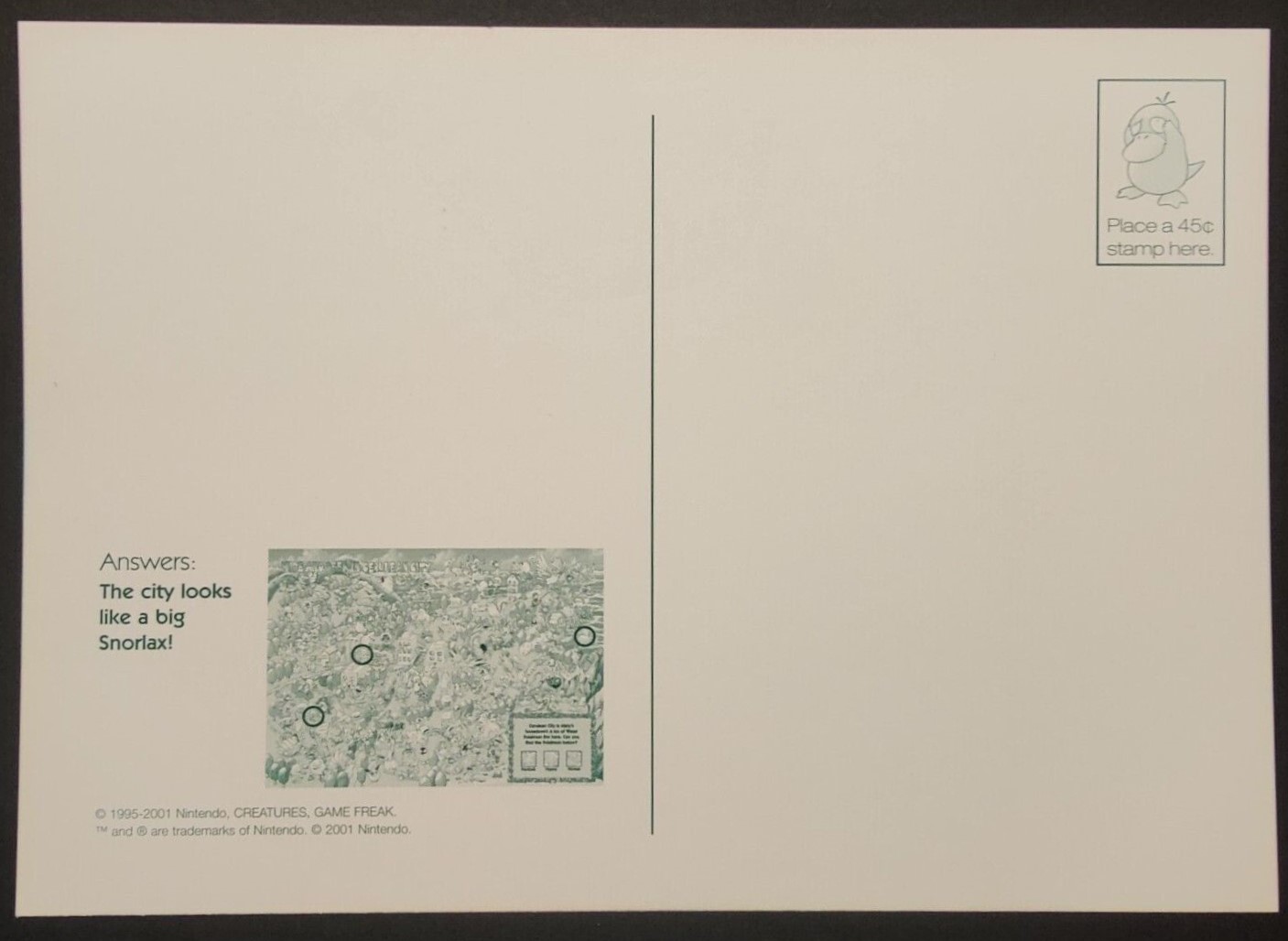 As detailed on the back - 8 of the postcards are scenes found in "Let's Find Pokemon! 1", 4 come together to form 1 large poster (the cover of the postcard book and Let's Find Pokemon! 1 without the text), 5 are (as far as I can tell) orignal illustrations, and the remaining 7 are an assortment of cards ranging from specific occassions (birthday and general celebrations), small activities (crossword puzzle, about me "mad lib", a word puzzle), to pokemon series concepts (Pokedex and evolution).