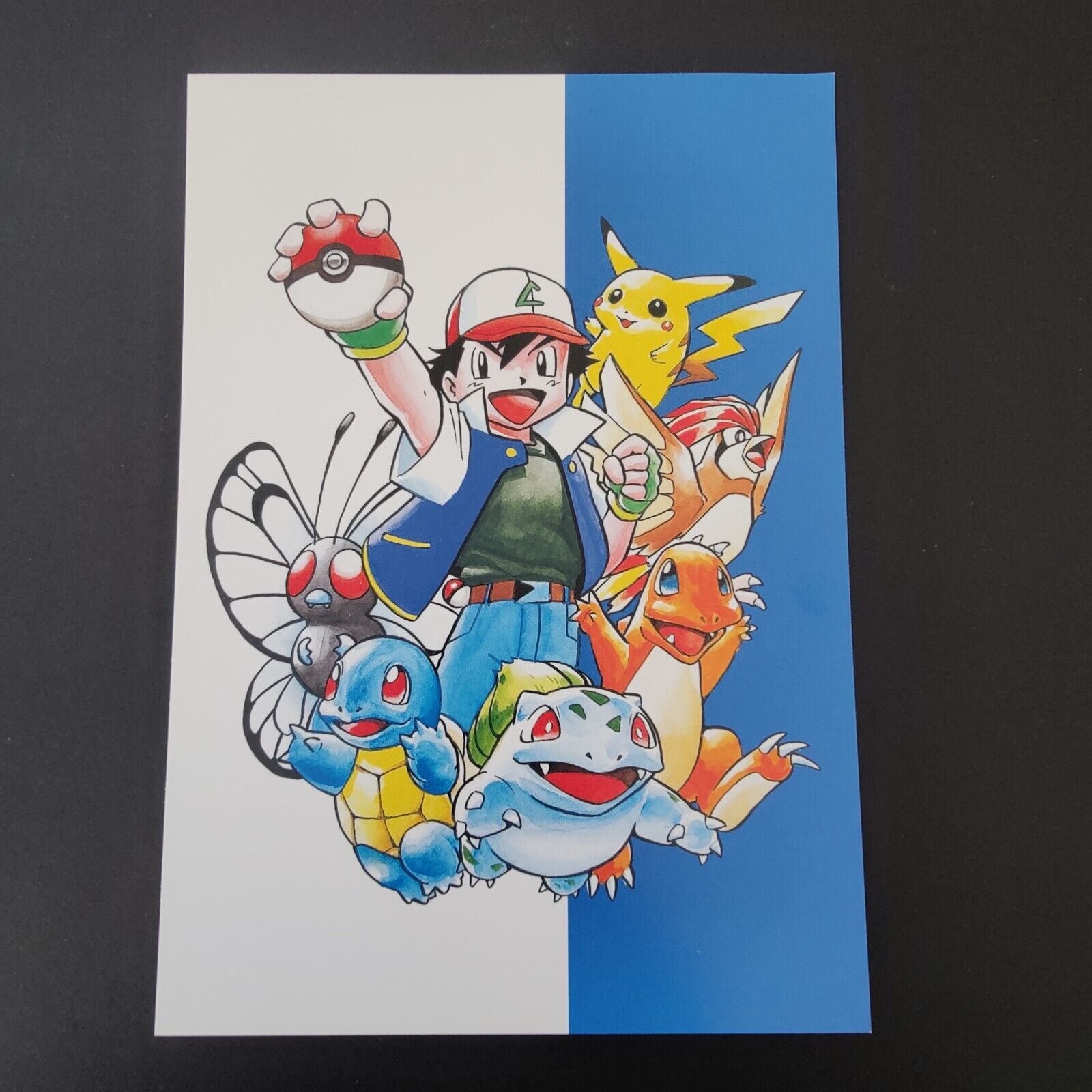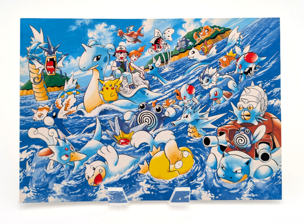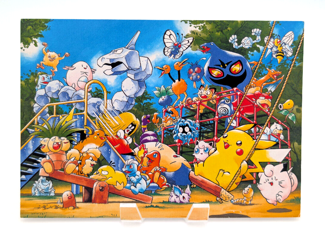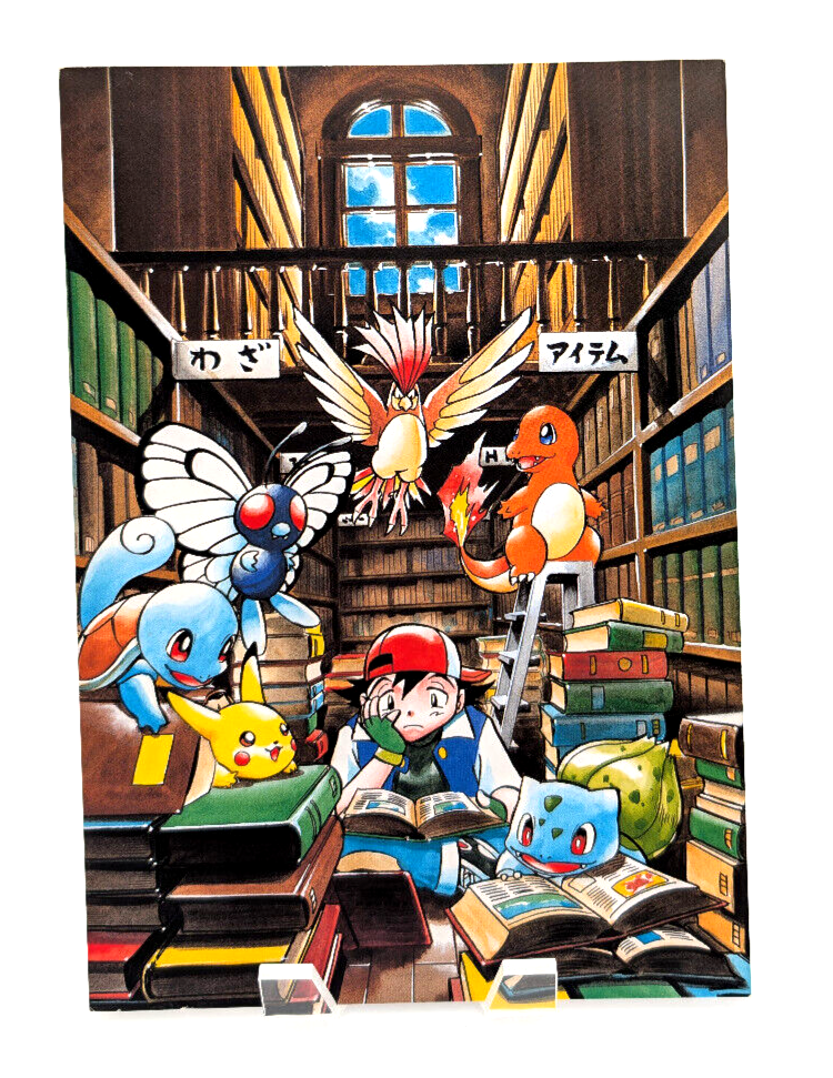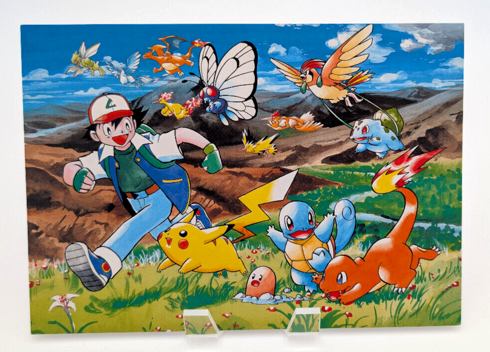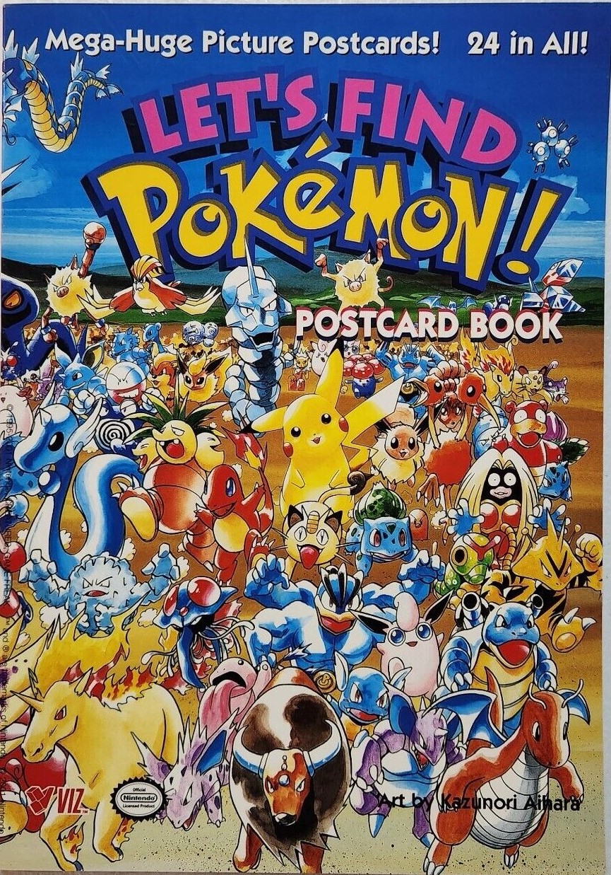 This book was published by VIZ Media LLC in North America on November 9, 2001 and by Shogakukan in Japan on August 1, 2000. It contains 24 pages / jumbo postcards - 5.8 x 8.3 inches. All art is credited to series illustrator Kazunori Aihara. These scenes contain Pokemon and locations from Kanto, as well as strongly featuring Ash / Satoshi from the Pokemon anime.