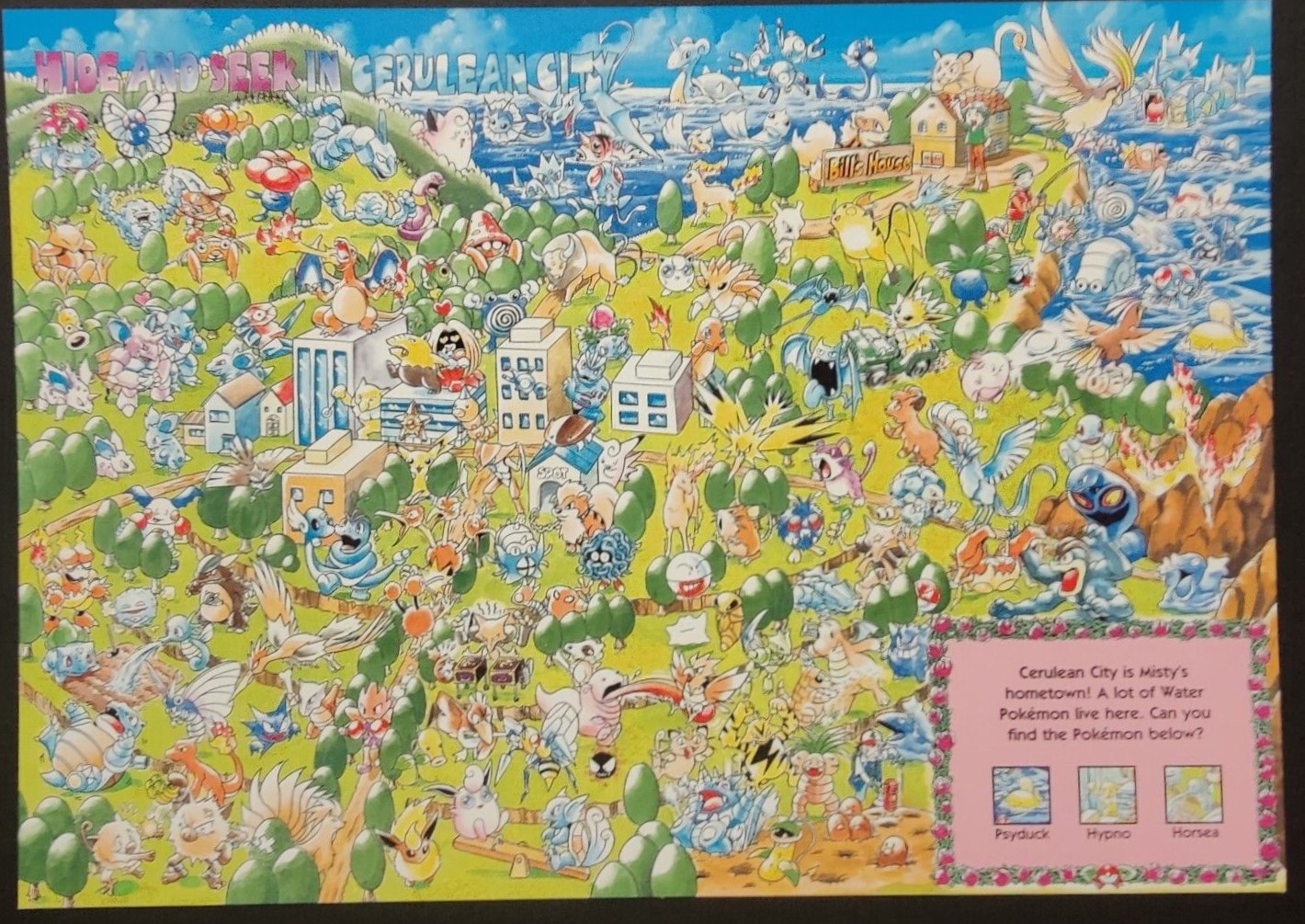 It feels like "Wimmelbilders", or hidden picture books, had their time in the sun in the '90s and early 2000's with the "Where's Waldo?" and "I-Spy" books being commonplace in any preschool or elementary school book fair. It makes complete sense that The Pokemon company, gaining popularity around the same time and featuring a HUGE cast of iconic critters, would hop on this trend.